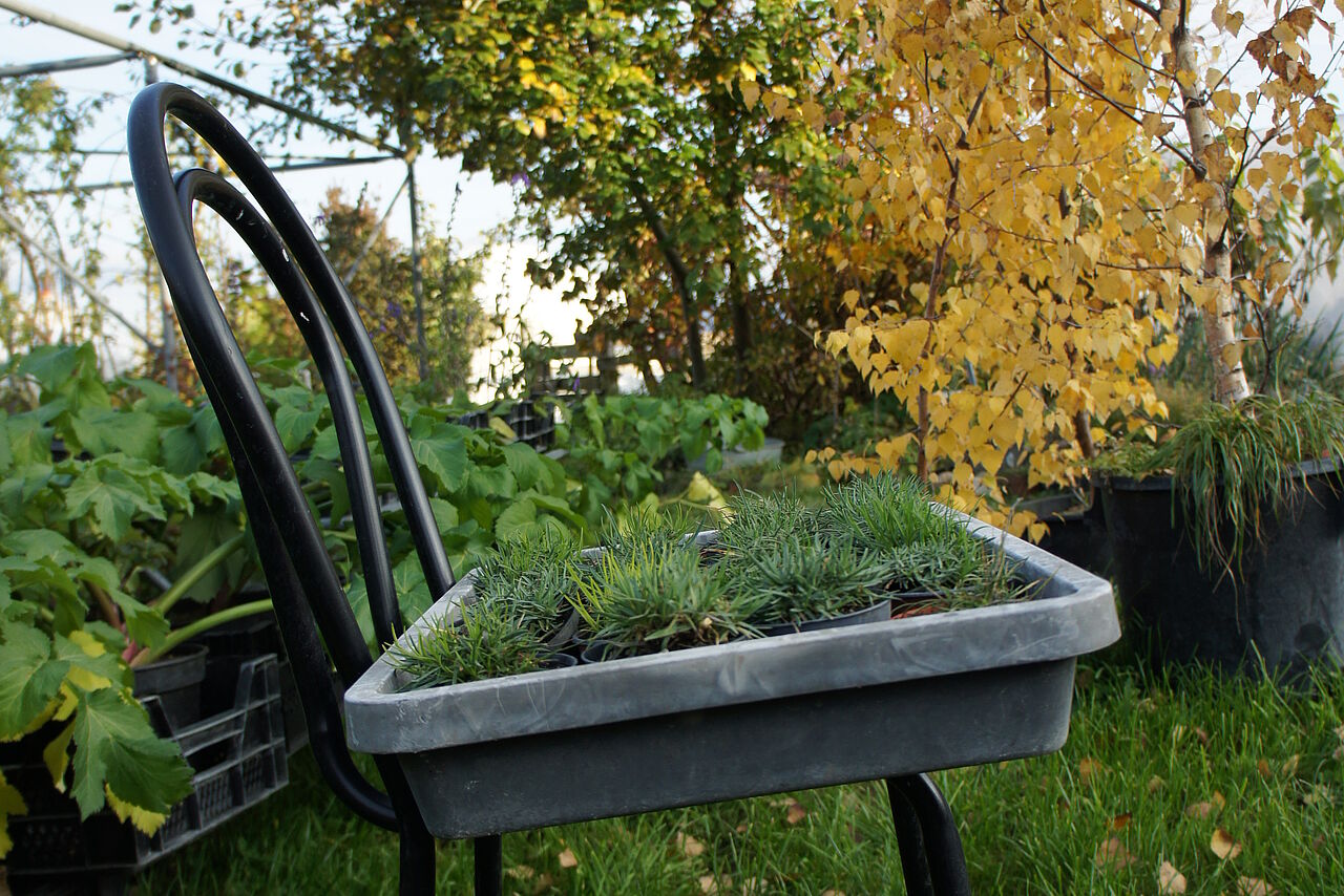 Dass es auf der Wegmatte Wildstauden zu kaufen gibt, ist der Verdienst von Bernhard Minder und seinem Bruder Res, die vor 15 Jahren die Wildstaudengärtnerei angelegt und gepflegt haben. Heute haben sie keine Musse mehr für die wilden Pflänzchen, deshalb kümmert sich Verena Groenveld schon seit 10 Jahren um die Pflege und Hege und geht im Frühjahr auf den Märit mit ihren Zöglingen.